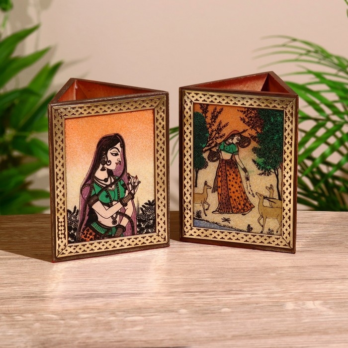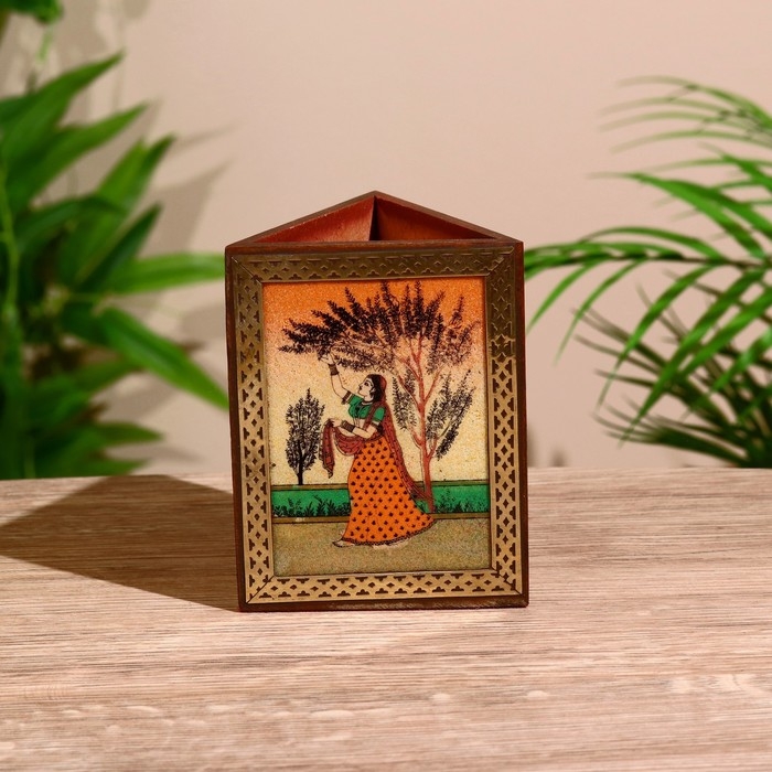 Подставка под карандаши "Индия" дерево шишам 9х9х11,5см МИКС