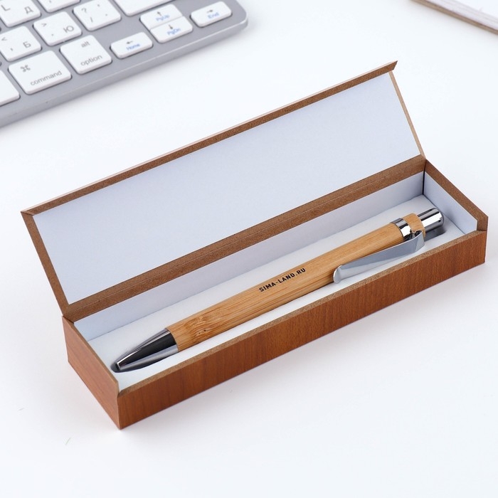 Бамбуковая ручка в деревянном футляре «Лучшему учителю», синяя паста, 1.0 мм