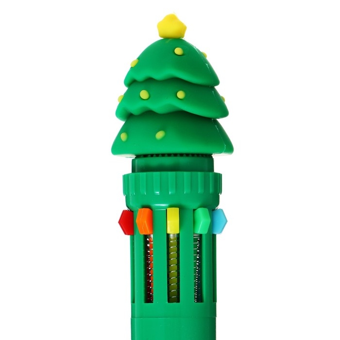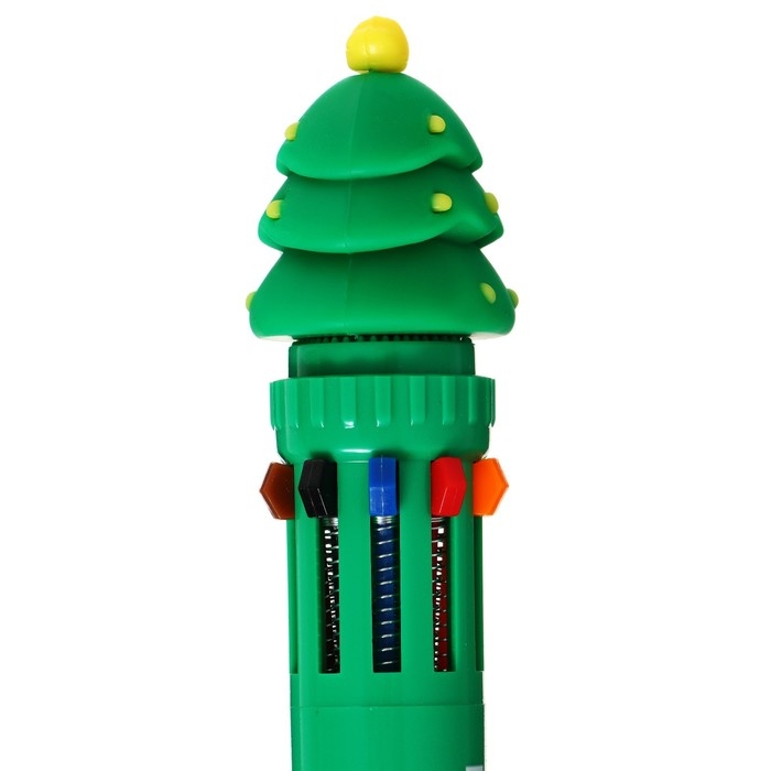 Новый год. Ручка шариковая автоматическая 10-ти цветная, стержень 0,7 мм, МИКС
