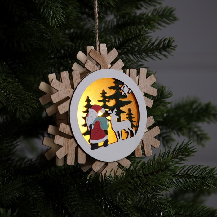 Ёлочная игрушка «Дед Мороз с подарками», от батареек, свечение тёплое белое