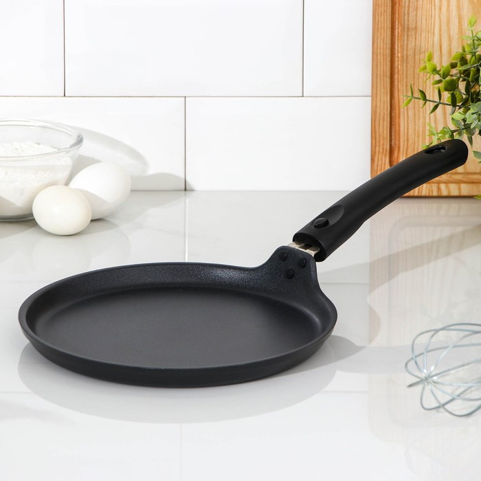 Сковорода блинная «Традиция», d=22 см, съёмная ручка, антипригарное покрытие, цвет чёрный