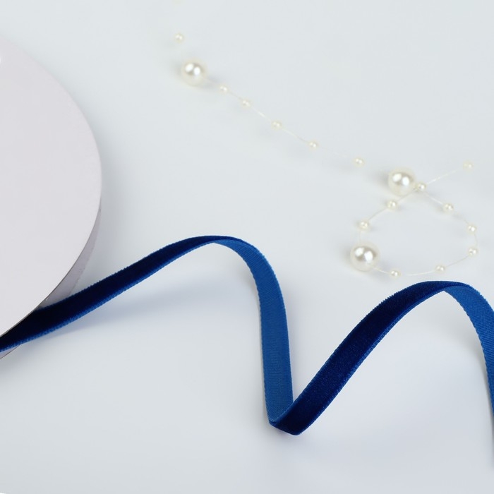 Лента бархатная, 6 мм, 18 ± 1 м, цвет синий №47