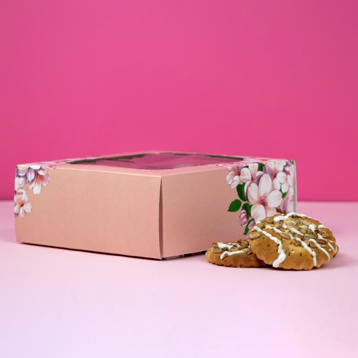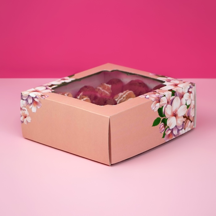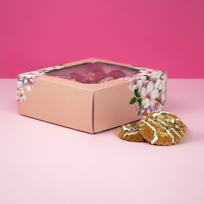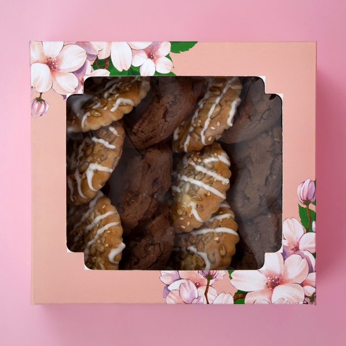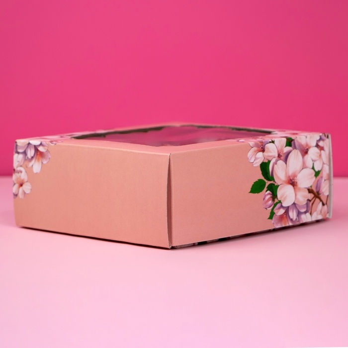 Коробка складная, крышка-дно, "Цветочки", 24 х 17 х 8 см с окном