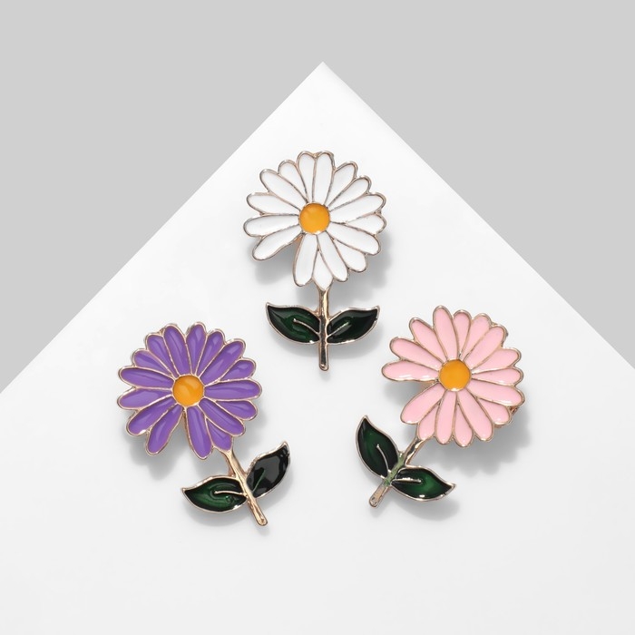 Брошь «Цветок» ромашка (неделимая фасовка 12 шт., стик на шт.), цвет МИКС