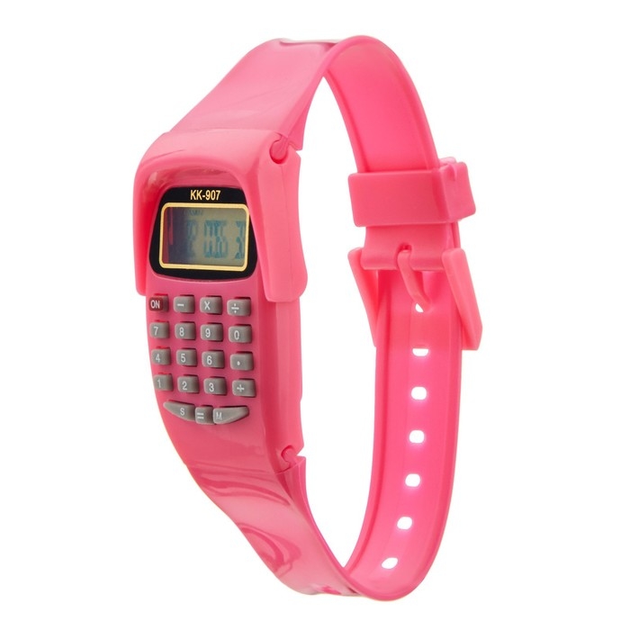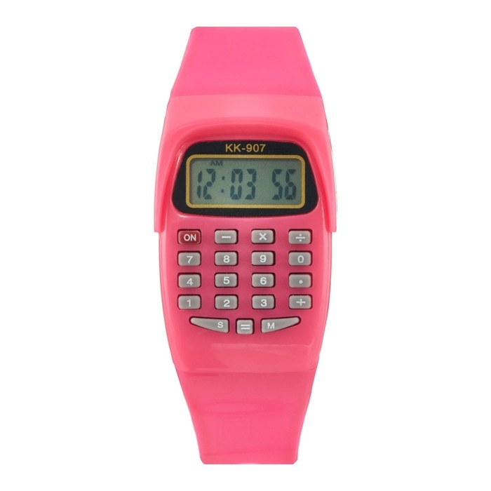 Часы наручные электронные детские, с калькулятором, ремешок силикон, l-21 см, розовые