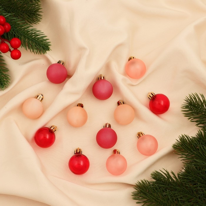 Набор шаров пластик d-3 см, 12 шт "Шедар" шёлк, розово-красный
