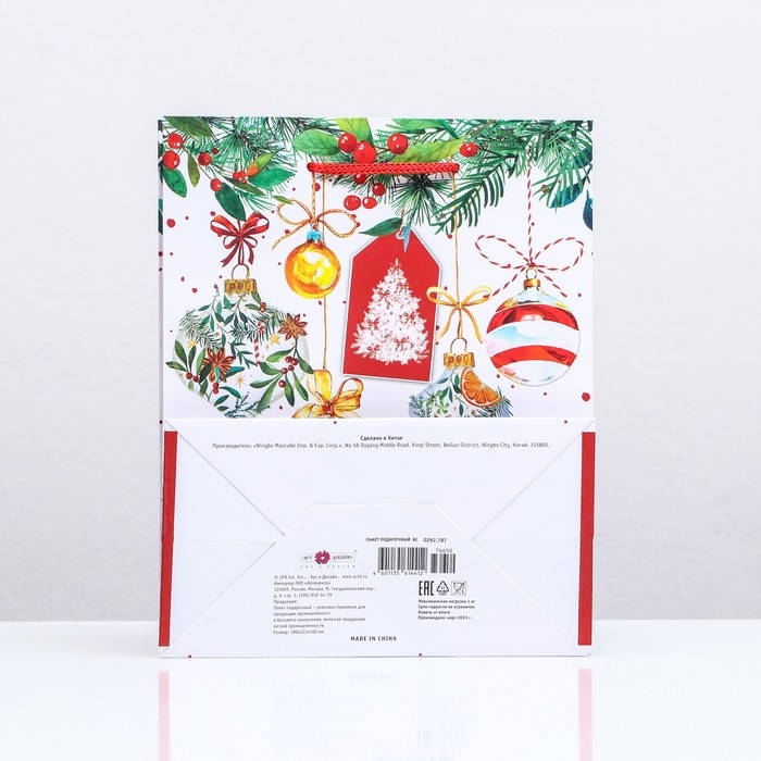 Новогодний подарочный пакет с ярким, красочным рисунком создаст праздничное настроение.