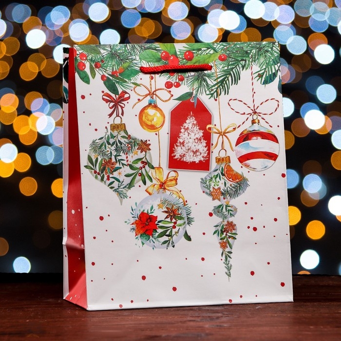 Новый год. Пакет подарочный "Новогодняя гирляда подарков", 18 х 22,3 х 10 см.