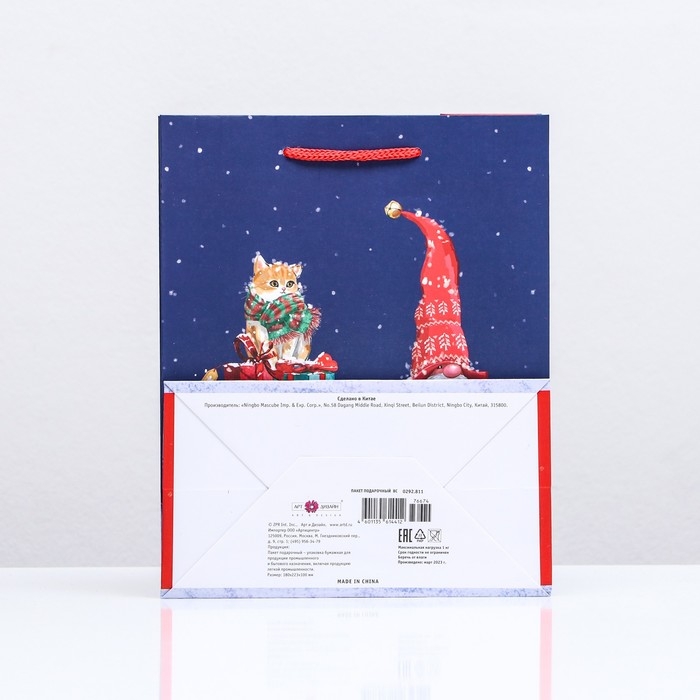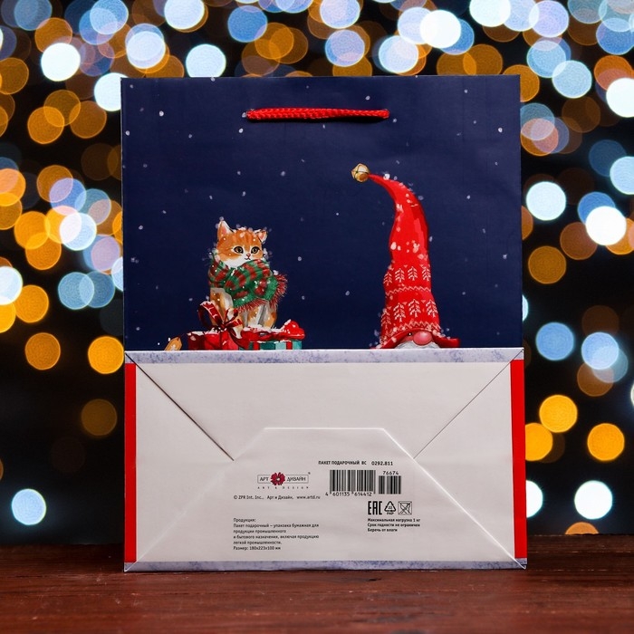Новогодний подарочный пакет с ярким, красочным рисунком создаст праздничное настроение.