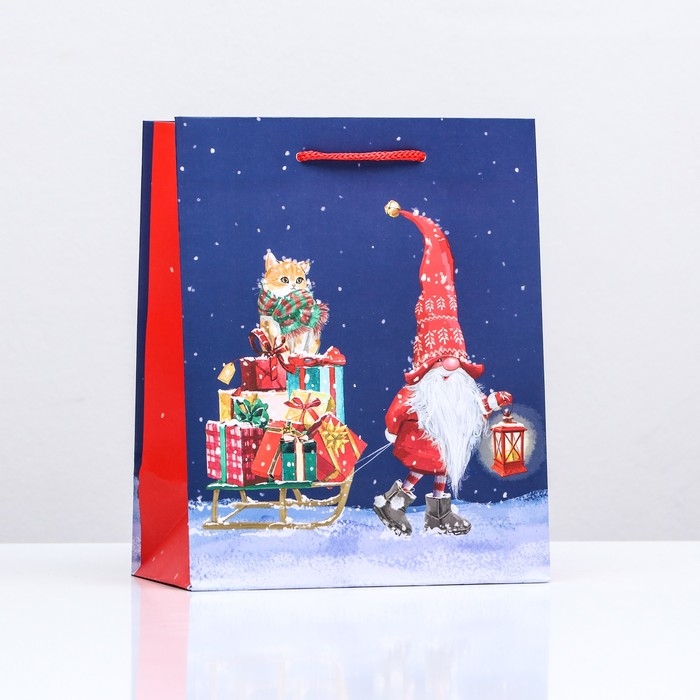 Новый год. Пакет подарочный "С подарочками", 18 х 22,3 х 10 см.