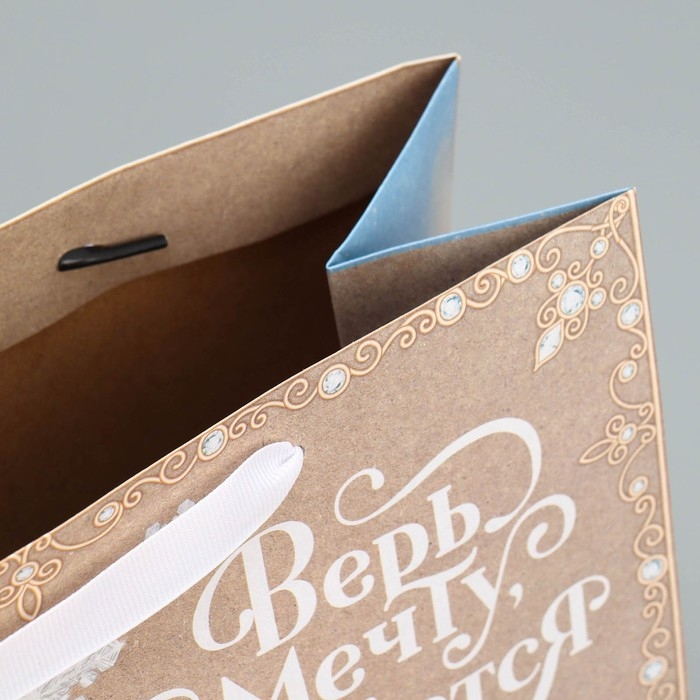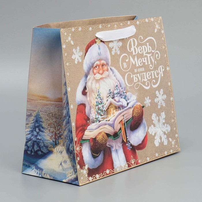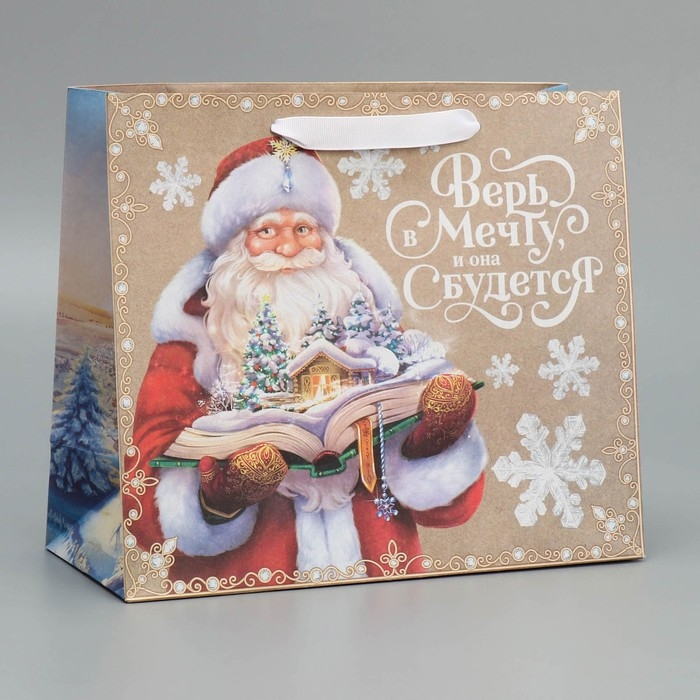 Пакет подарочный новогодний крафтовый горизонтальный «Дедушка Мороз», ML 27 х 23 х 11.5 см, Новый год