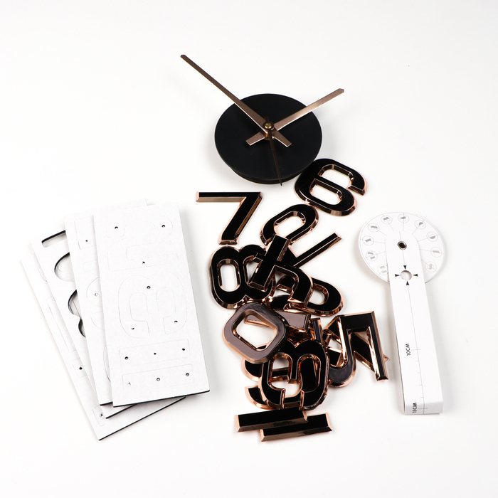 Создавайте часы в собственном стиле, проявляйте изобретательность и креативность. Не обязательно располагать числа по кругу — придайте аксессуару необычную форму, поменяйте диаметр циферблата, используйте не все элементы. Комплектующие легко клеятся на стену и без труда снимаются.