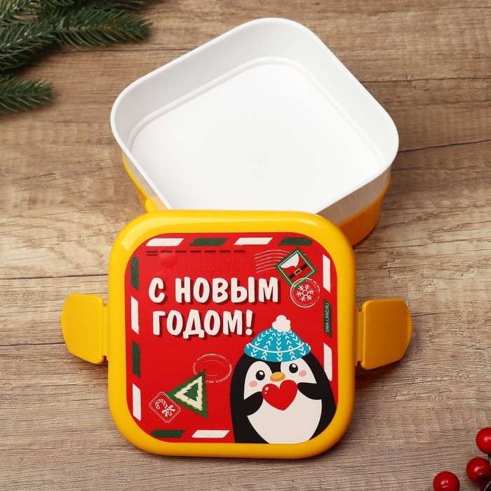 Новый год. Ланч-бокс двухуровневый «Пингвин», отсеки по 400 мл
