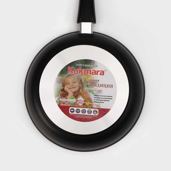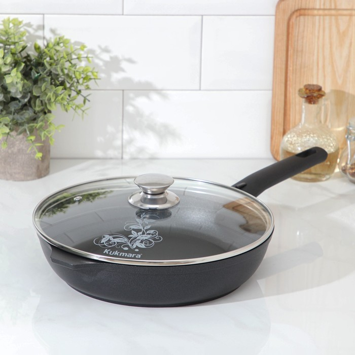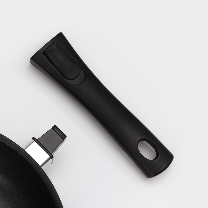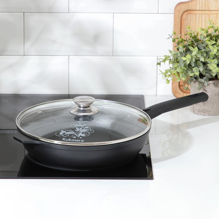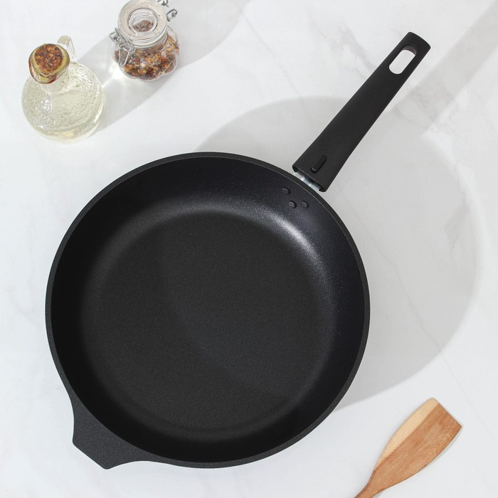 Сковорода «Традиция», d=26 см, стеклянная крышка, съёмная ручка, антипригарное покрытие, цвет чёрный