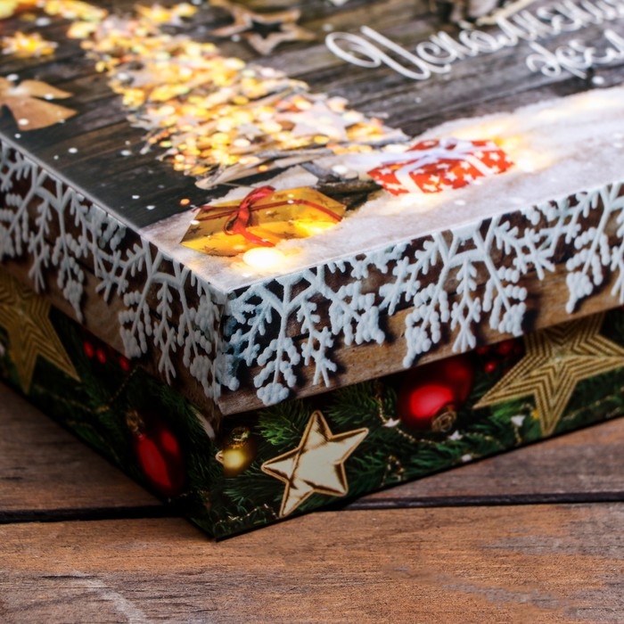 Коробка складная прекрасно подойдет для оформления подарка на Новый год.
