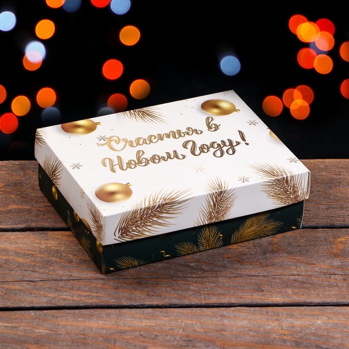 Новый год. Коробка подарочная новогодняя складная, "Счастья в Новом году", 16,5 х 12,5 х 5,2 см