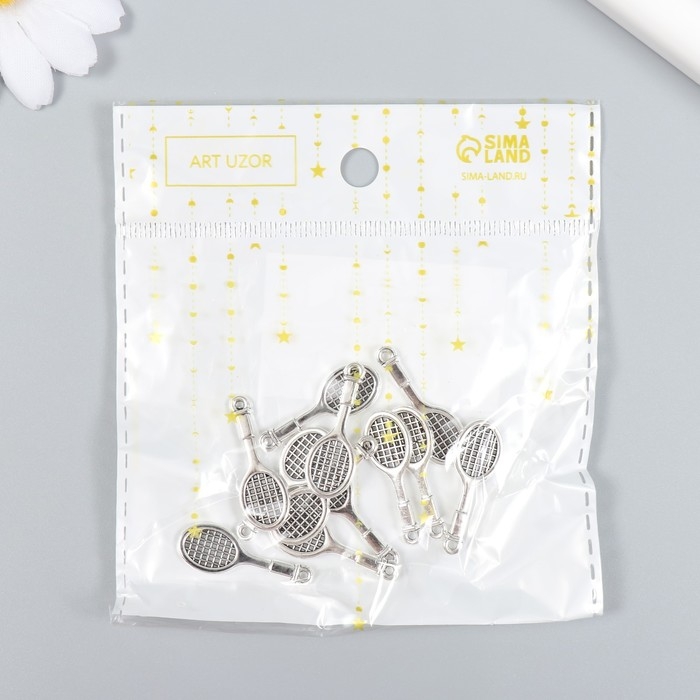 Декор для творчества металл "Ракетка" набор 12 шт серебро 1х2,8 см