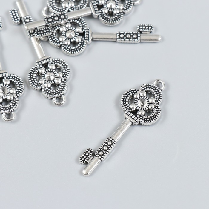 Декор для творчества металл "Ключик с трилистником" набор 6 шт серебро 1,5х4,2 см
