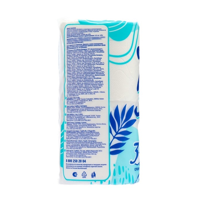Туалетная бумага Pero, 3 слоя, 4 рулона