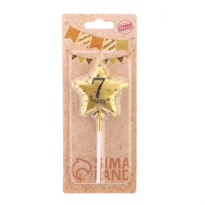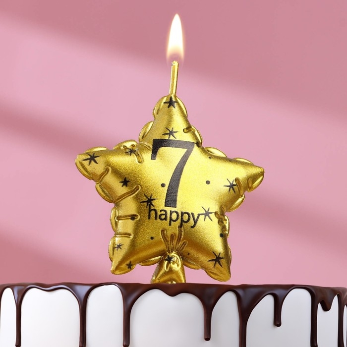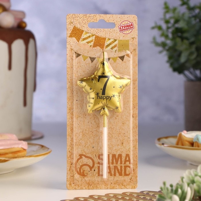 Свеча в торт на шпажке "Воздушный шарик.Звезда", цифра 7, 11х5 см, золотая