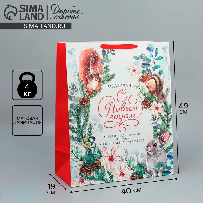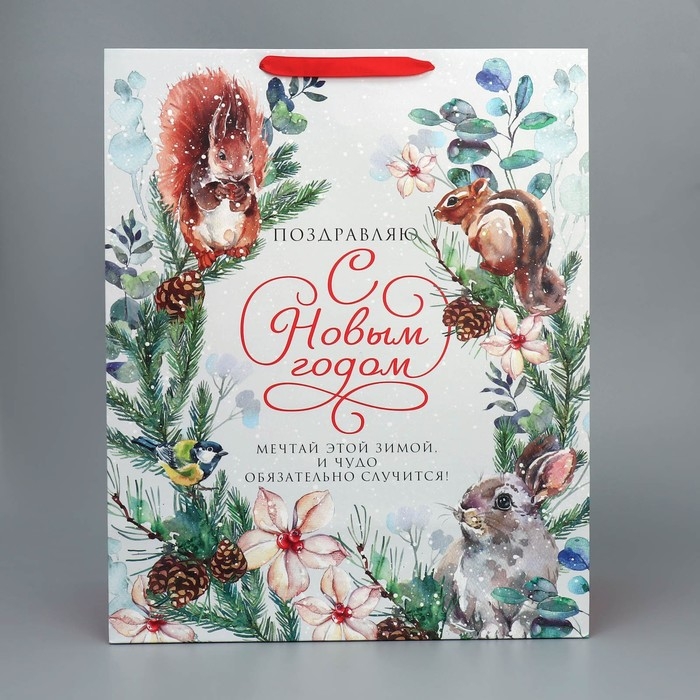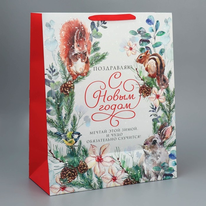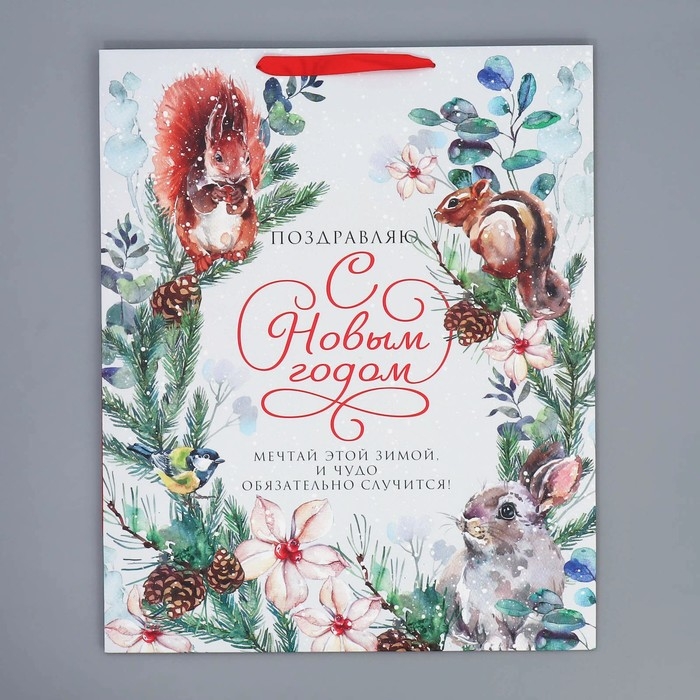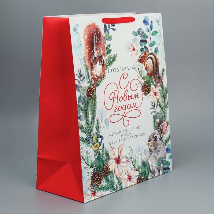 Пакет подарочный новогодний ламинированный «Новогодняя акварель», XL 40 х 49 х 19 см, Новый год