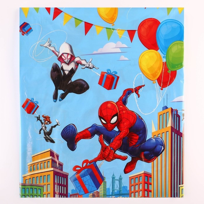 Скатерть одноразовая праздничная 120х180 см, 35 мкр, Человек-паук