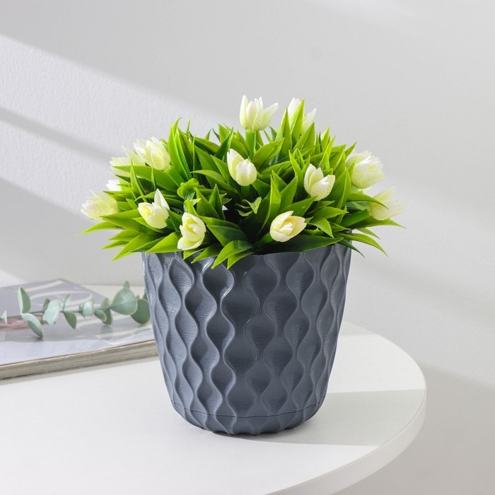 Горшок для цветов с поддоном «Wave», 1,4 л, d=14,5 см, цвет серый