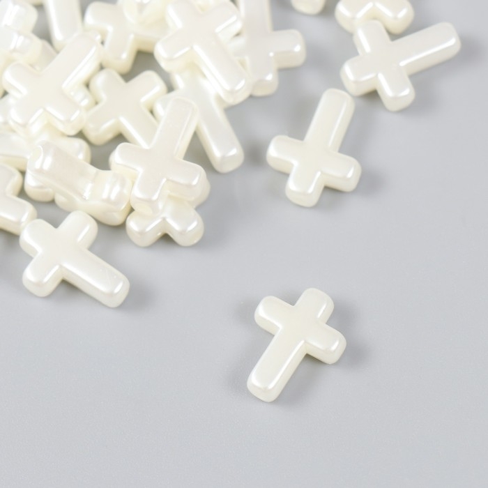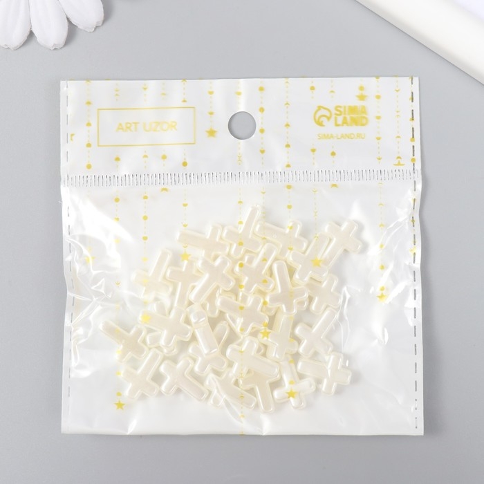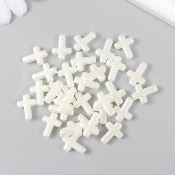Бусины для творчества пластик "Крестик жемчужный" набор 30 шт 1,2х1,6 см