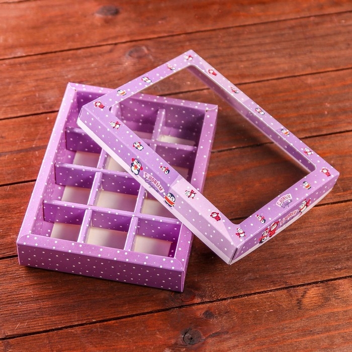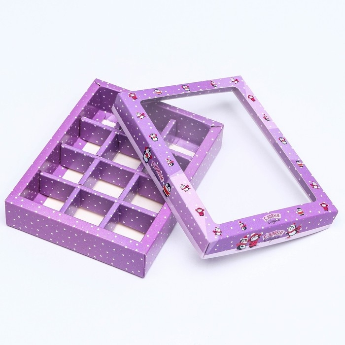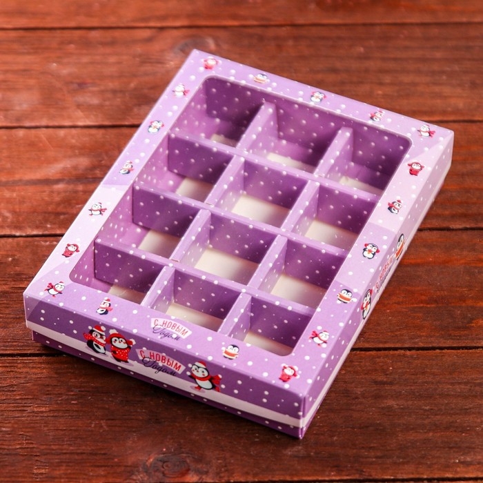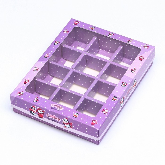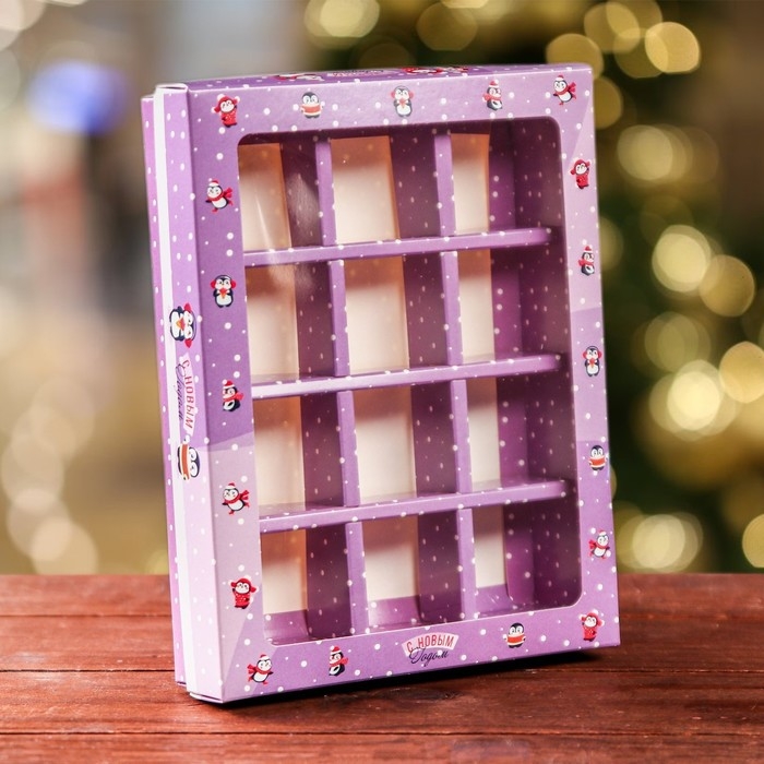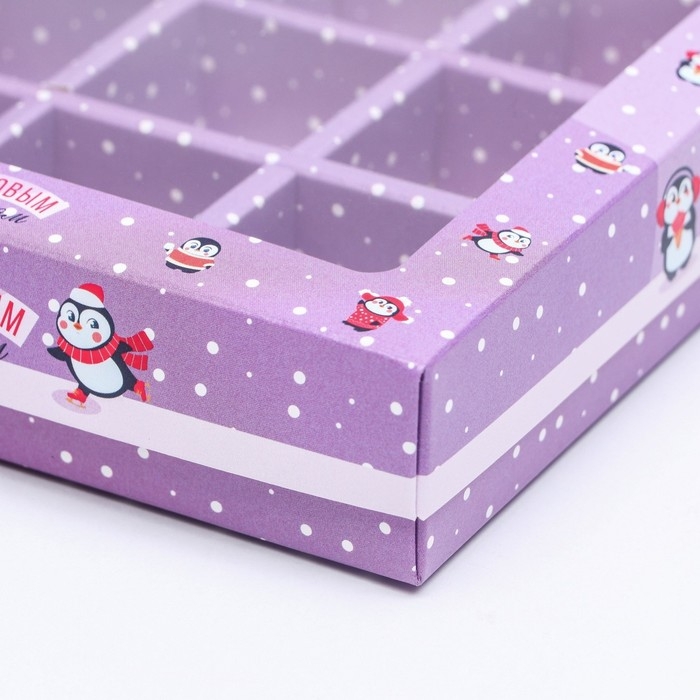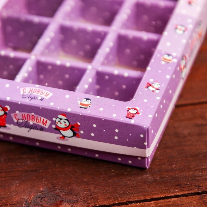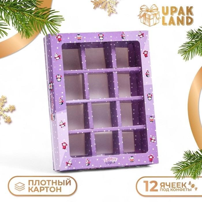 Новый год. Новогодняя коробка-упаковка для конфет 12 шт "Новогодний пингвин", 19 х 14,5 х 3,5 см.