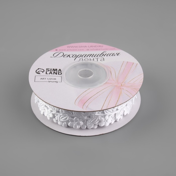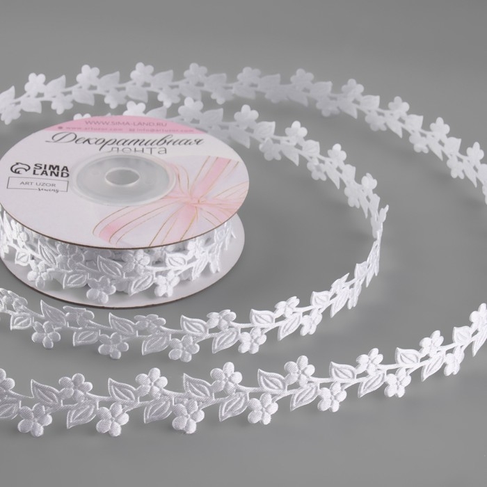 Лента фигурная «Ветви с цветами», 20 мм, 9 ± 0,5 м, цвет белый