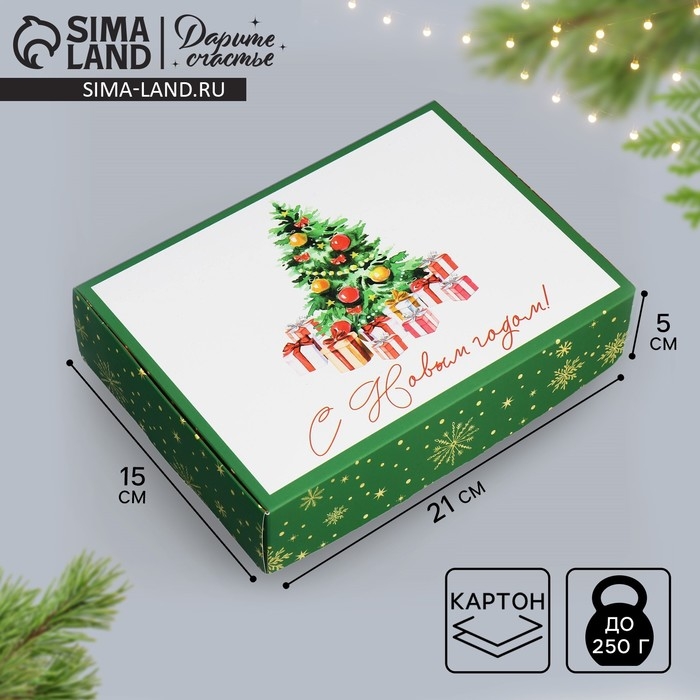 Коробка подарочная новогодняя складная «С Новым годом!», ёлочка, 21 х 15 х 5 см, Новый год
