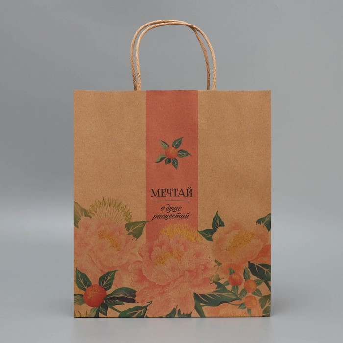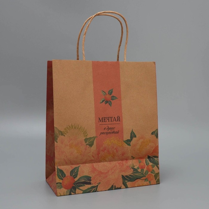 Пакет подарочный крафтовый, упаковка, «Мечтай», ML 23 х 27 х 11.5 см