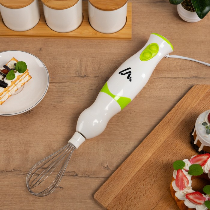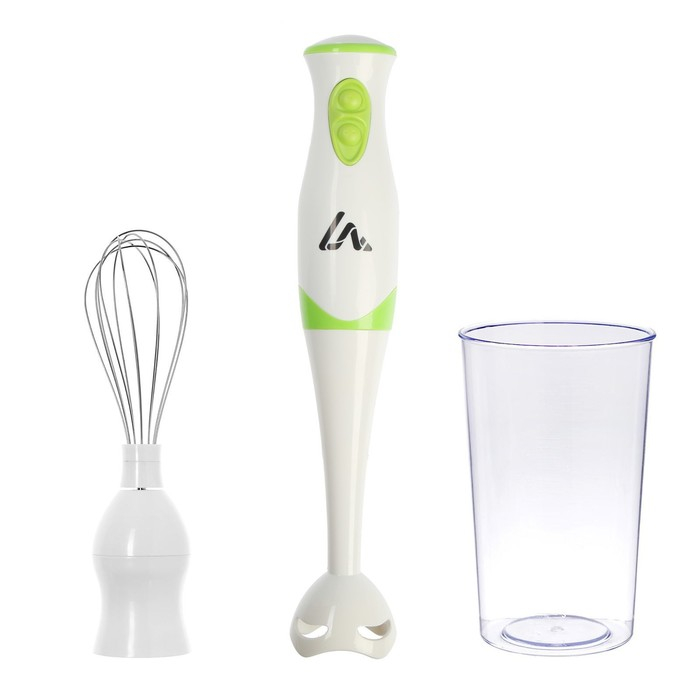 Блендер Luazon LBR-26, погружной, 300 Вт, 0.6 л, 2 скорости, бело-зеленый
