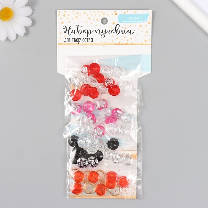 Пуговицы для творчества пластик "С рисунком" набор 4 вида х 15 шт 20х10 см