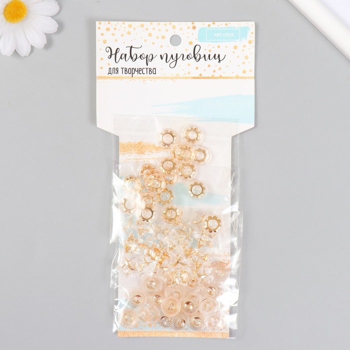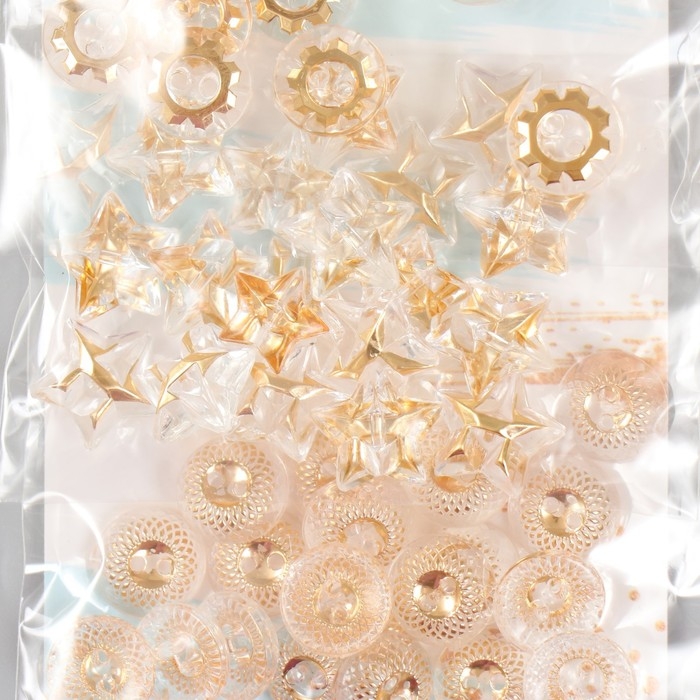 Пуговицы для творчества пластик "Прозрачные с золотом" набор 3 вида х 20 шт 20х10 см