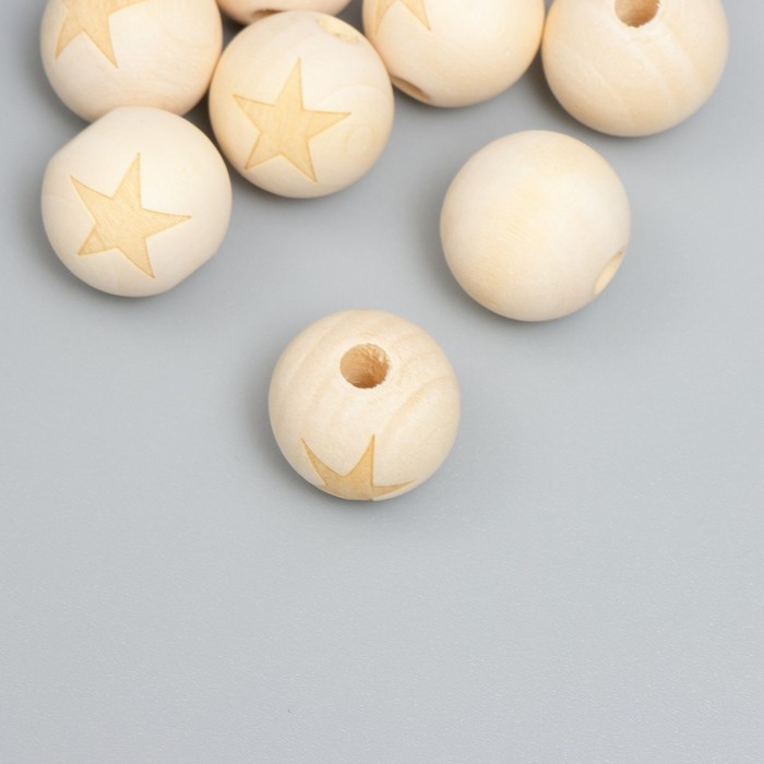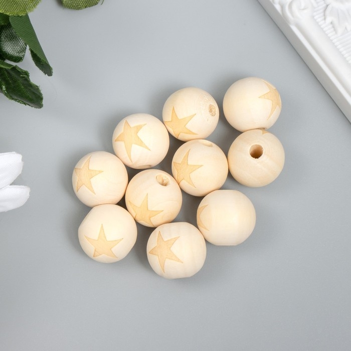 Бусина дерево для творчества "Круглая. Звезда" d=1,8 см набор 10 шт