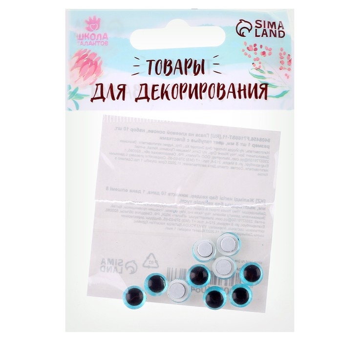 Глаза на клеевой основе, набор 10 шт., размер 1 шт. — 8 мм, цвет голубой с блёстками