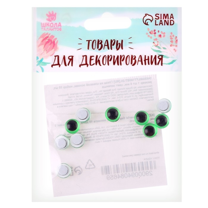 Глаза на клеевой основе, набор 10 шт., размер 1 шт. — 8 мм, цвет зелёный