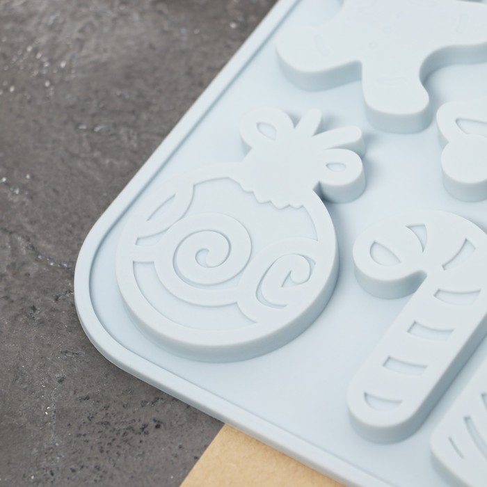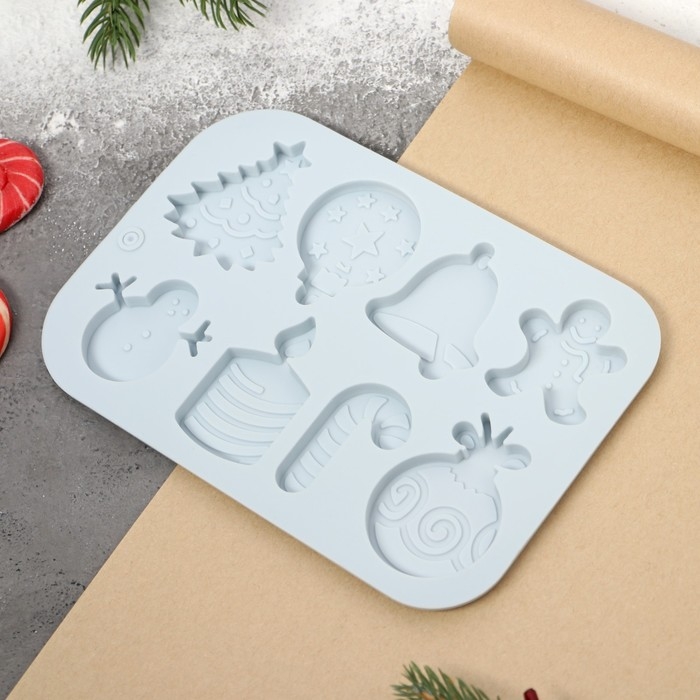 Форма для шоколада новогодняя Доляна «Новый год», силикон, 18,5×12,8×0,5 см, 8 ячеек, цвет серый