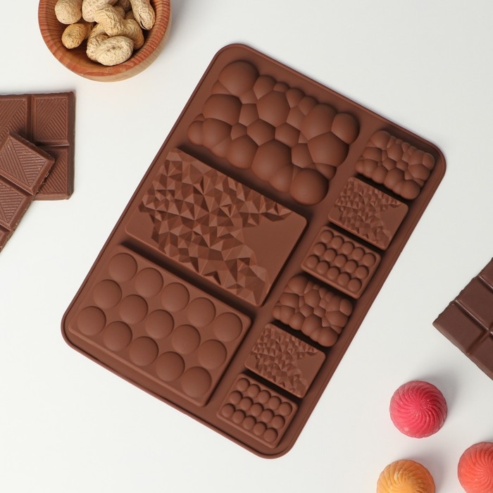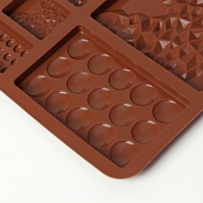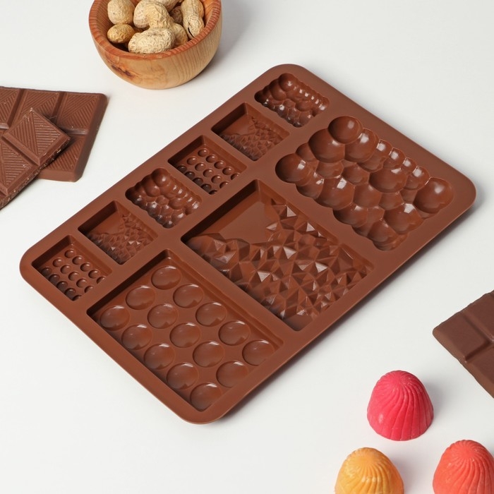 Форма для шоколада Доляна «Шоколадное ассорти», силикон, 20×14,8×0,7 см, 9 ячеек, цвет коричневый