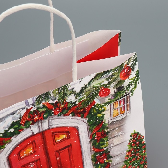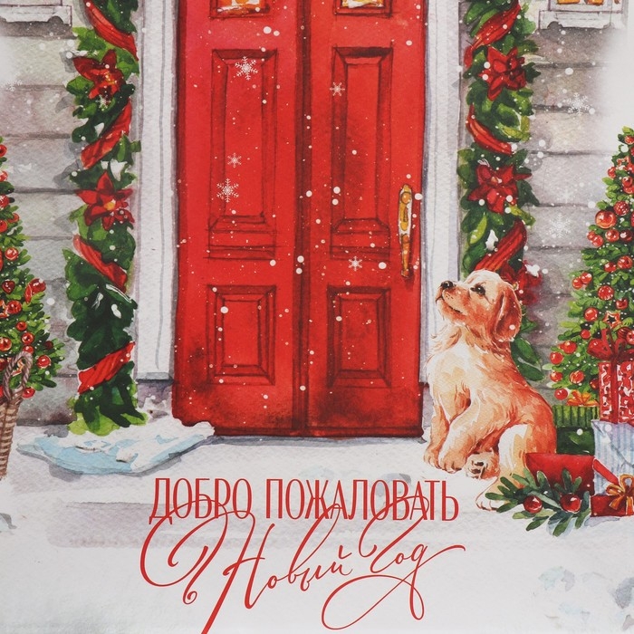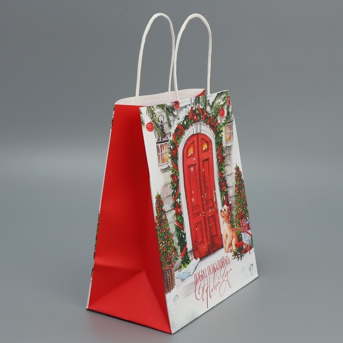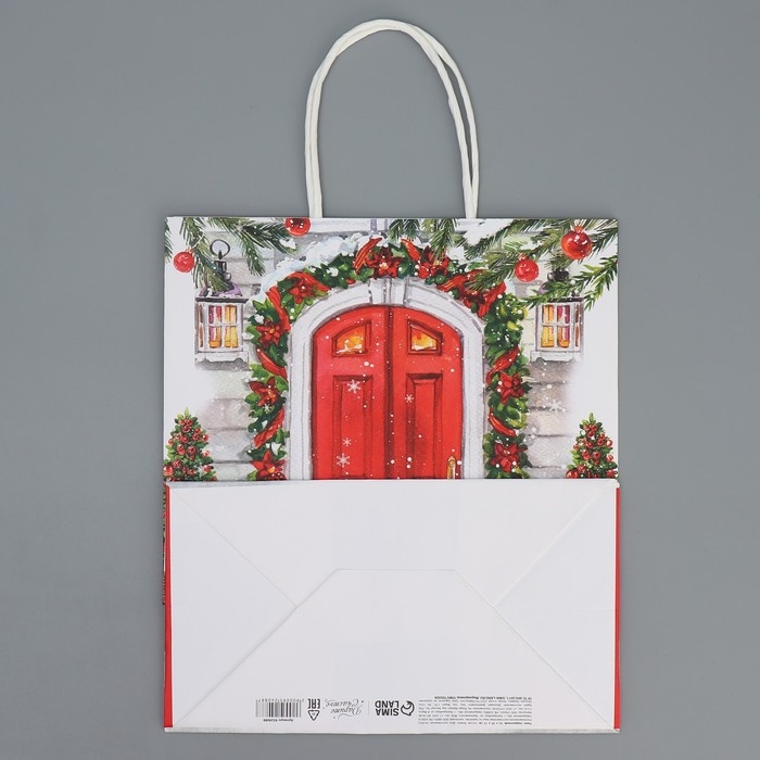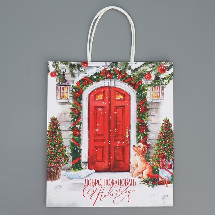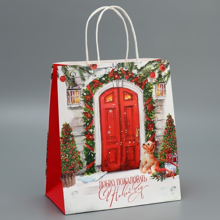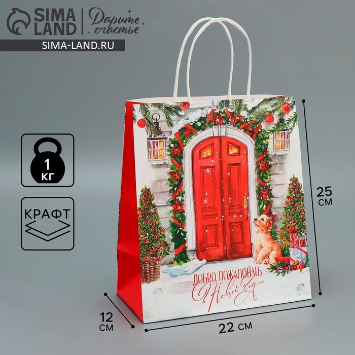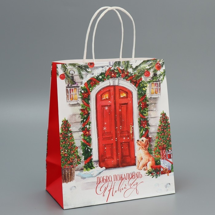 Пакет подарочный новогодний крафтовый «Добро пожаловать», 22 х 25 х 12 см, Новый год