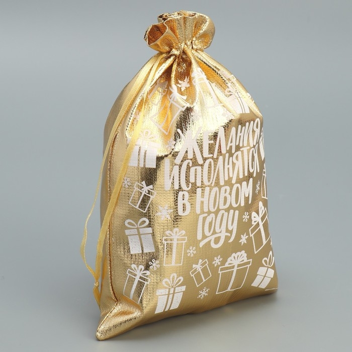 Мешочек подарочный парча «Желания исполняются», 16 х 24 см +/- 1.5 см, Новый год