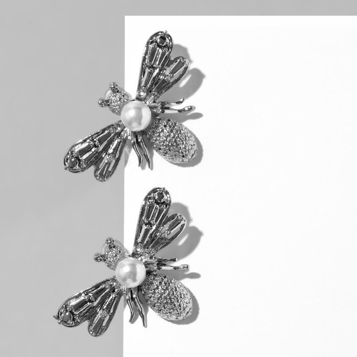 Серьги с жемчугом «Мухи» сказочные, цвет белый в серебре