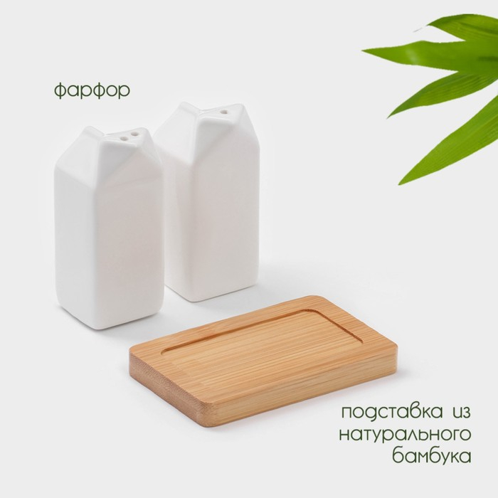 Набор фарфоровый для специй на бамбуковой подставке BellaTenero «Пакет», 3 предмета: солонка, перечница, подставка, цвет белый