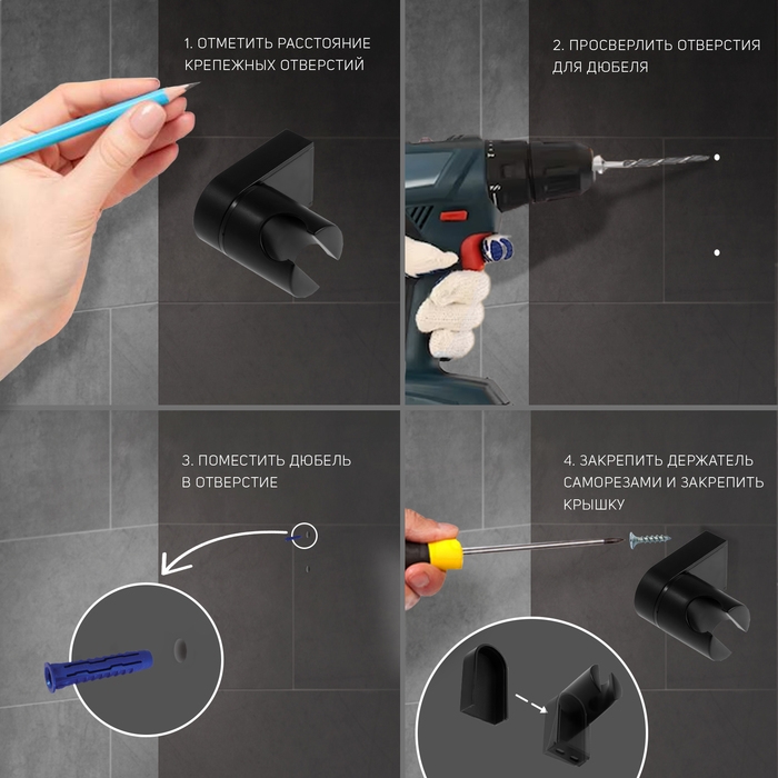 Держатель для душевой лейки ZEIN Z91, регулируемый, пластик, черный