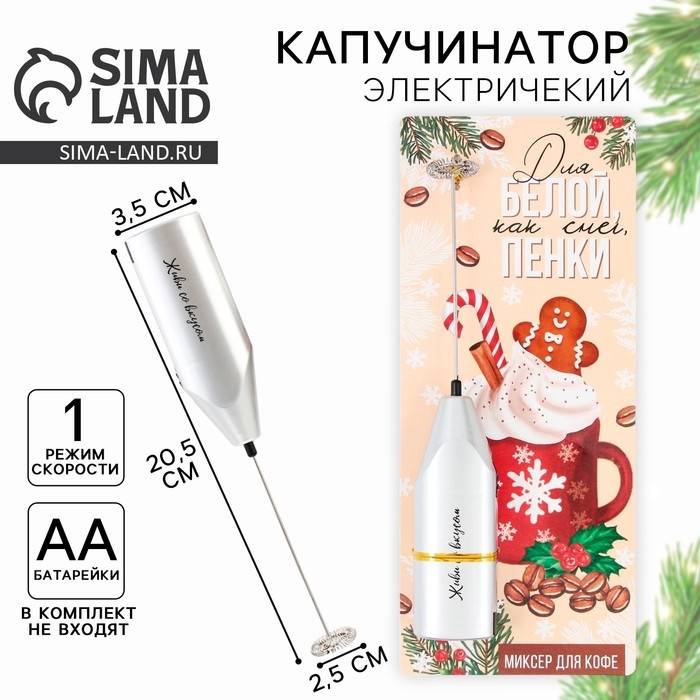 Он быстро и легко взбивает молоко и сливки до плотной и упругой пены, работает от двух батареек типа АА и не занимает много места.