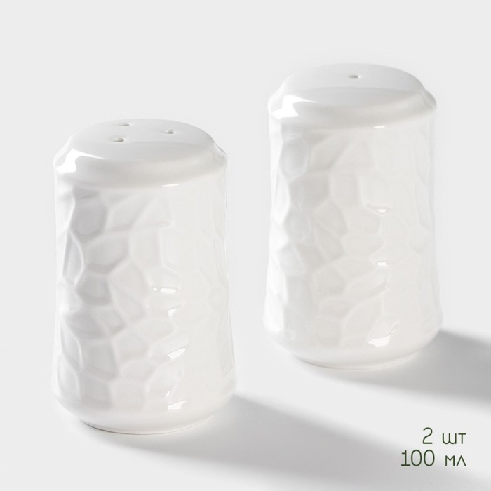 Набор фарфоровый для специй Wilmax, 2 предмета: солонка 65 мл, перечница 65 мл, цвет белый
