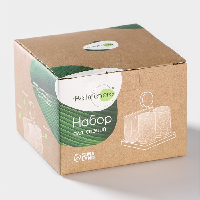Набор для специй BellaTenero изготовлен из качественного фарфора. Кухонные изделия из фарфора отличаются прочностью и надёжностью, устойчивы к появлению царапин и резким перепадам температур. Благодаря оригинальному дизайну набор отлично впишется в интерьер вашей кухни и станет настоящей изюминкой при сервировке.