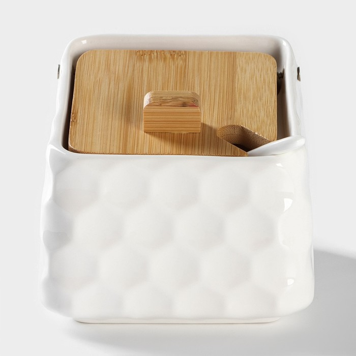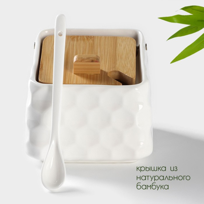 Банка для хранения сыпучих продуктов с ложкой BellaTenero, 750 мл, 14,5×11 см, с бамбуковой крышкой, фарфоровые, цвет белый