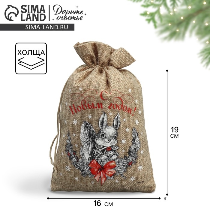 Мешок с термонаклейкой «Белочка», 16 х 24 см +/- 1.5 см, Новый год